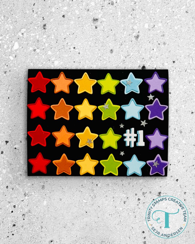 Each card uses the star die in the same fashion, where I cut out both the solid star and the start border in 2 shades of each colour. For example, a light and dark red. I cut enough of each to ensure there were be no waste, and glued the alternating shades together. So a light red border on a dark red solid star.