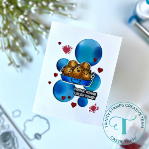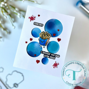Hi there and welcome back to the Trinity Stamps Blog. It’s Cassie Trask, back with another video tutorial to share with you. I can’t help but giggle every time I look at the new Nugs & Kisses stamps and dies, so I had to use it for today’s cards. To start, I die cut some circles from a panel using the Clean Cut Layers Circle Set B.