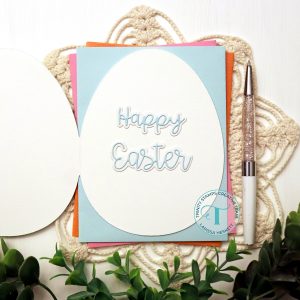 For the Inside of the Card I Die Cut some White and Light Turquoise Cardstock using the NEW Simply Sentimental Easter Die Set!! I Adhered them to the inside of the Card and I LOVE this Font!!