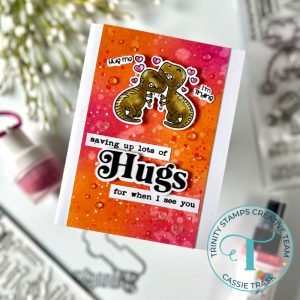 I love a good set of cards, so today’s goal was to make just that. . .a set of cards! Hi and welcome back to the Trinity Stamps Blog. I’m Cassie Trask back with another video tutorial to share with you. It’s getting close to our next big card holiday, so I pulled out my T-riffic stamps and dies along with my Simply Sentimental Hugs stamps and dies to make a set of 3 cards.
