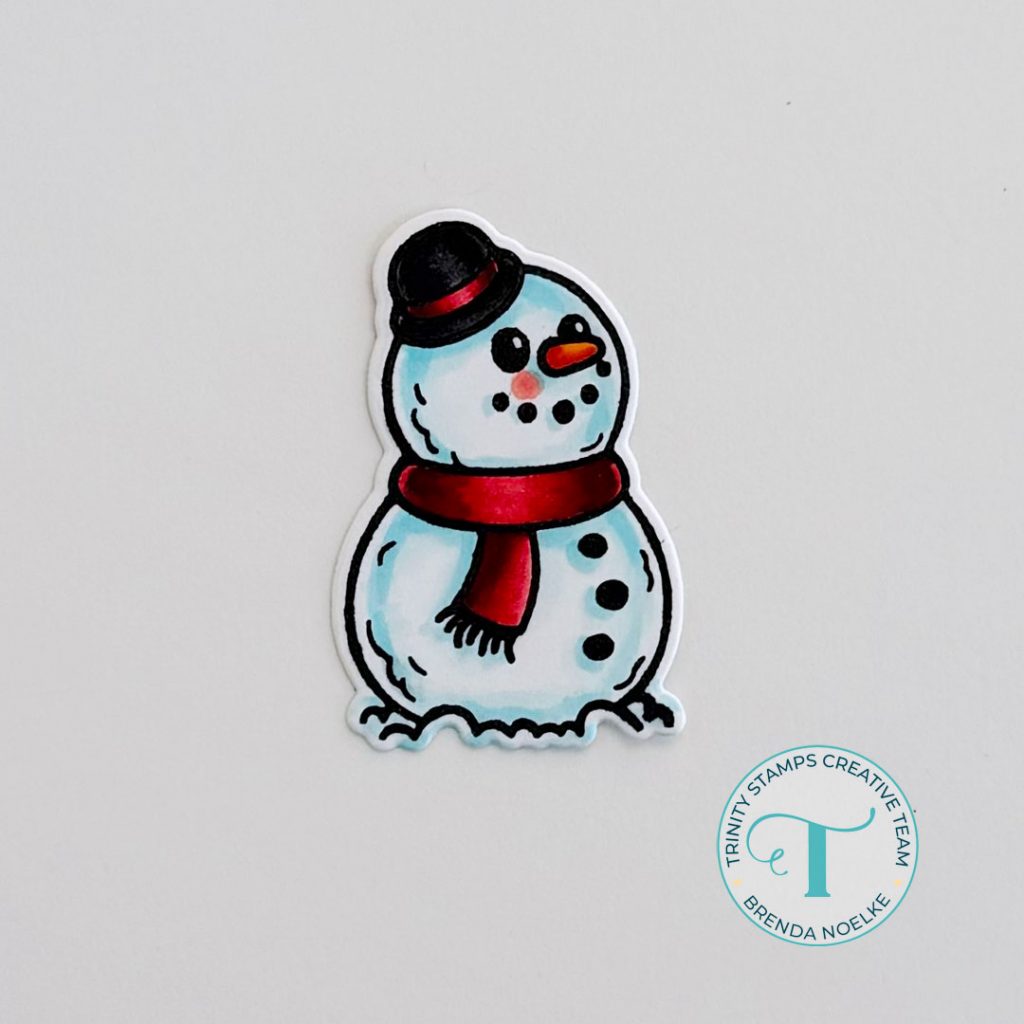 I started by stamping the single snowman from the Snow Stacks Stamp Set onto white cardstock with Copic-friendly black ink. I colored it with Copic markers and used the Coordinating Die to cut him out.