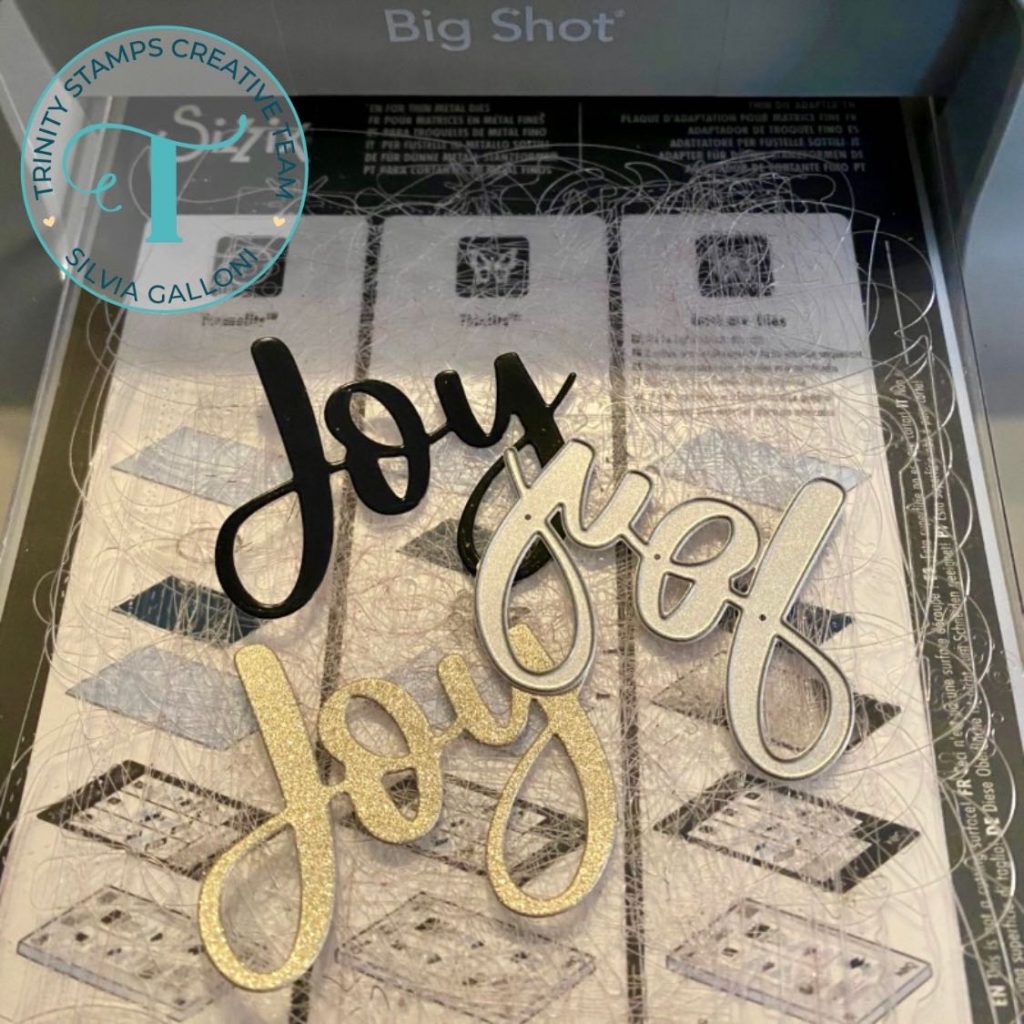 Next I used the “Big Joy Cut & Foil” set to cut a word from black cardstock and one word from gold cardstock, I glued them one above the other and I put it in my layout.