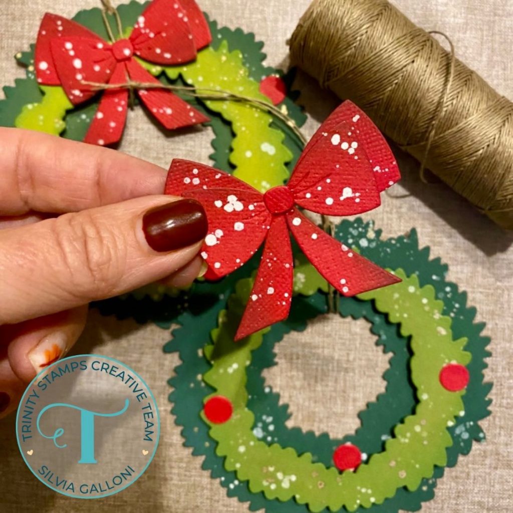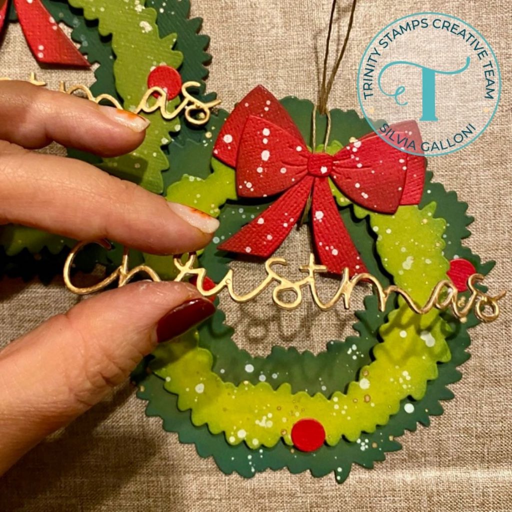 I started cutting all the pieces I needed with the new “Holidy Wreath Circle Card Add-on” die set from colored cardstocks.
