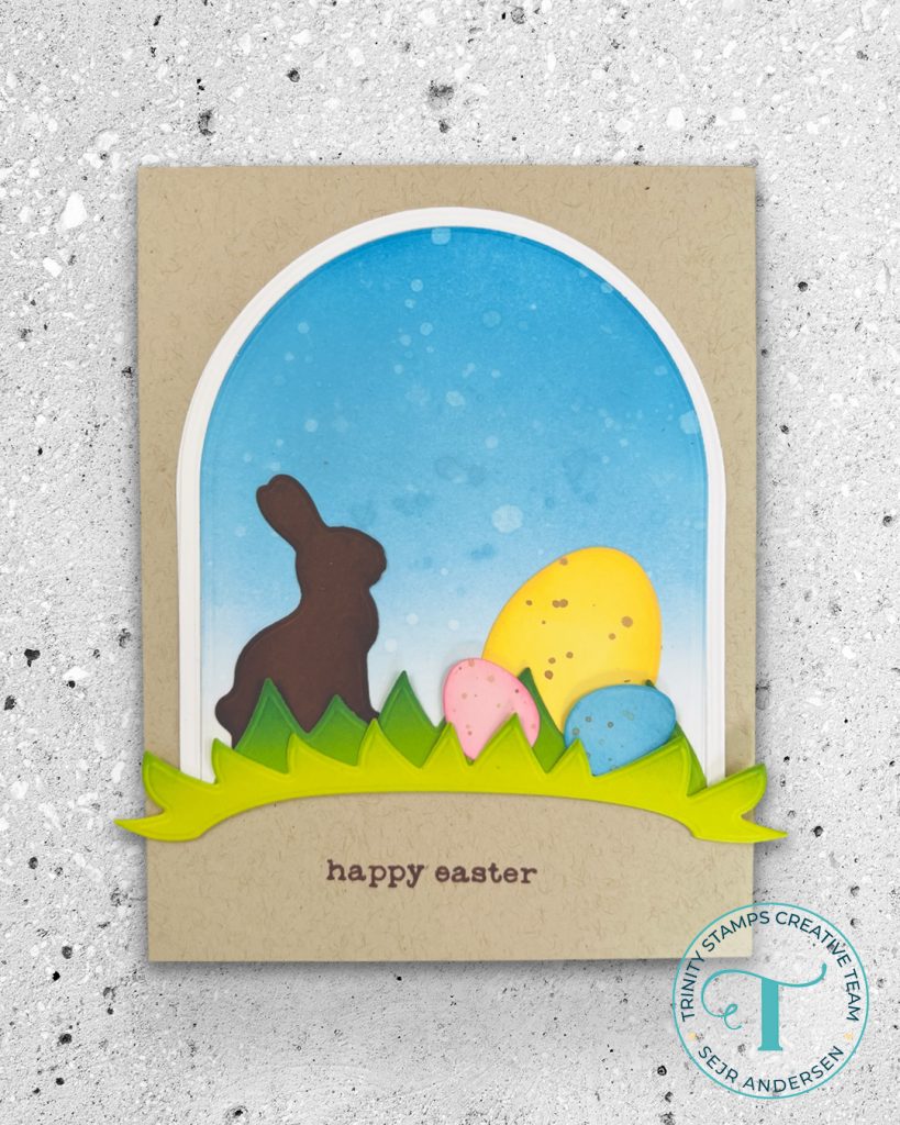 Good morning, today I’m sharing a minimalistic design using the new February 2026 release by Trinity Stamps. I am working with the Easter Basket die set and the Simply Senitments – Easter stamp set.