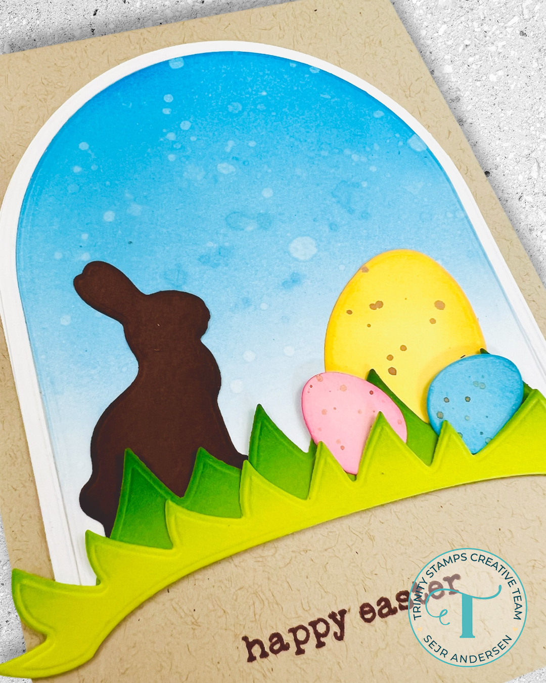 Good morning, today I’m sharing a minimalistic design using the new February 2026 release by Trinity Stamps. I am working with the Easter Basket die set and the Simply Senitments – Easter stamp set.