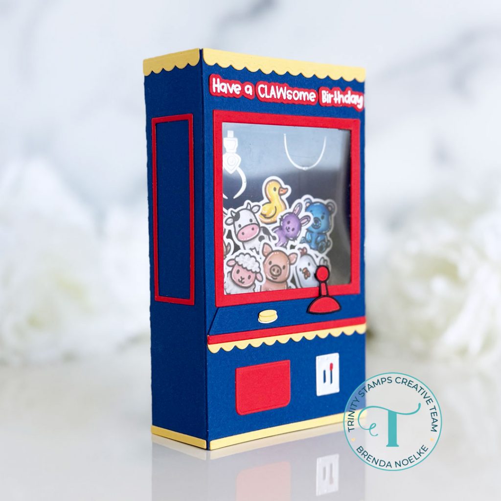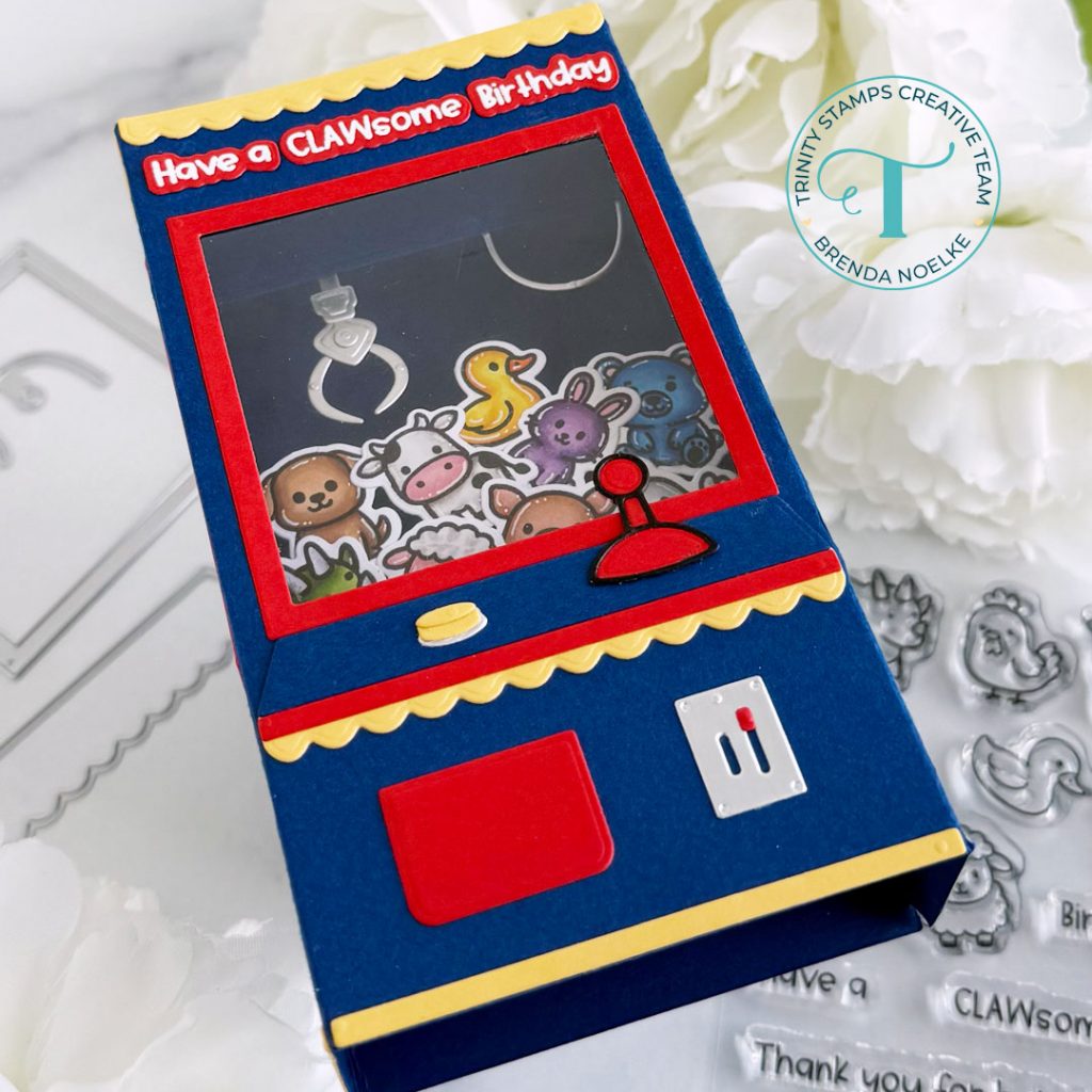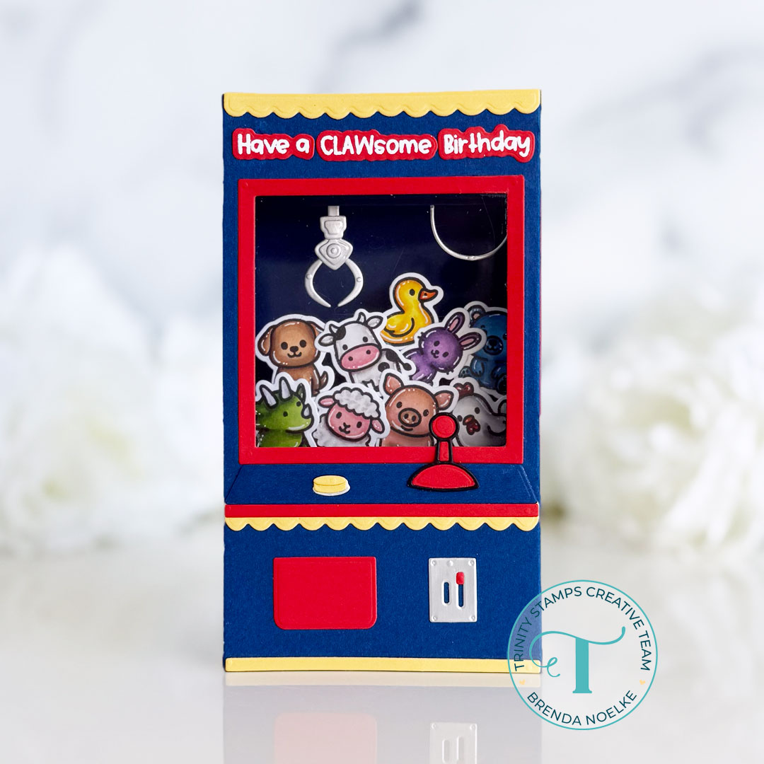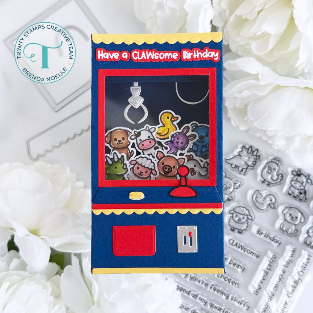 Happy Thursday, friends!! Brenda here with a pop-up card featuring the A2 Window Box Card Dies, Gashapon Machine Die Set, and the Stuffies Stamp Set & Coordinating Dies!!