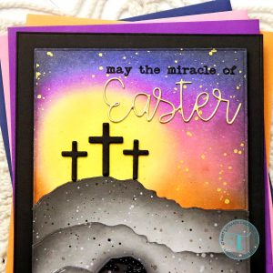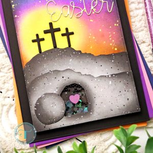 Larissa here today to share a STUNNING Miracle of Easter Shaker Card using the NEW Empty Tomb Die Set along with the NEW Simply Sentimental Easter Stamp Set and coordinating NEW Simply Sentimental Easter Die Set!! There are so many ways to create with this set and it can be used for backgrounds all year round!!