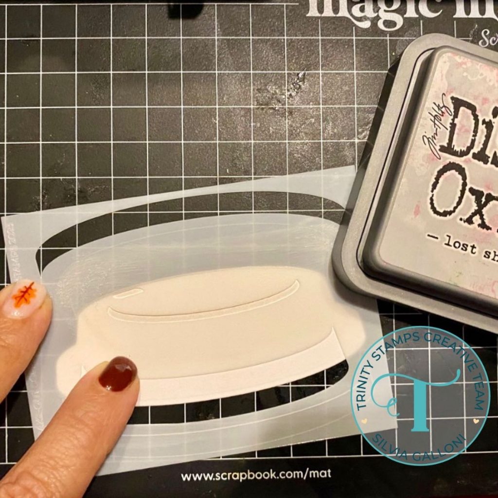 I also die cut the lids, I colored them with the coordinating stencil and lost shadow Distress Oxide ink and I glued them on the top of every pages (front and back).