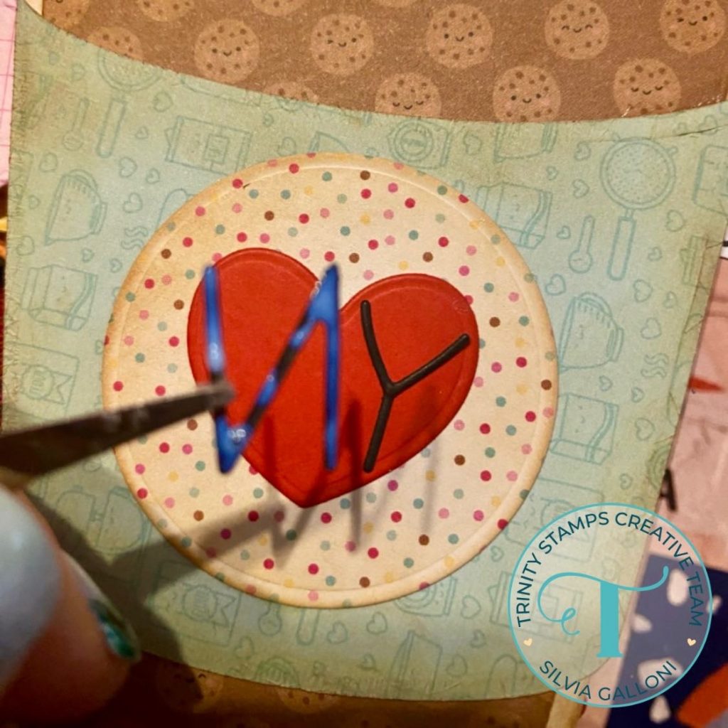 I used the “Take-out Coffee Cup Shaped Card” to cut some coffe beans, the “Simply Sentimental-Love” stamp set and coordinating dies to cut some scripty sentiments, the “A Cuppa Sentiments” stamp set to embossed some words like cheer and enjoy, the “Sundae Swirl Alphabet” die set to cut some letters and the “Tiny Mugs” die set to cut some mugs.