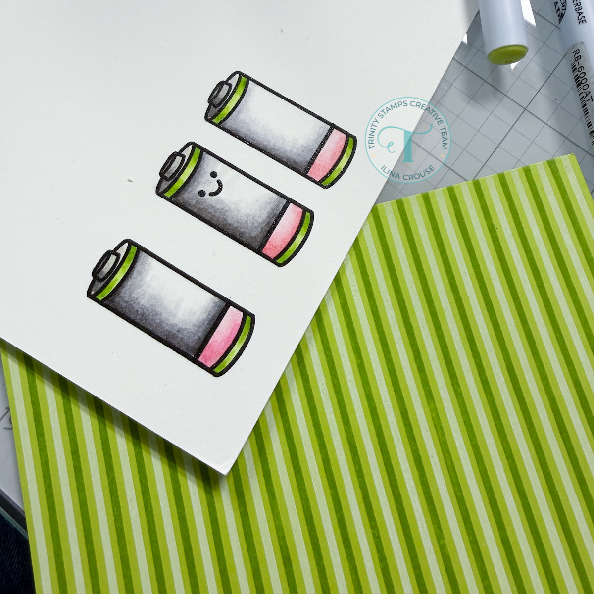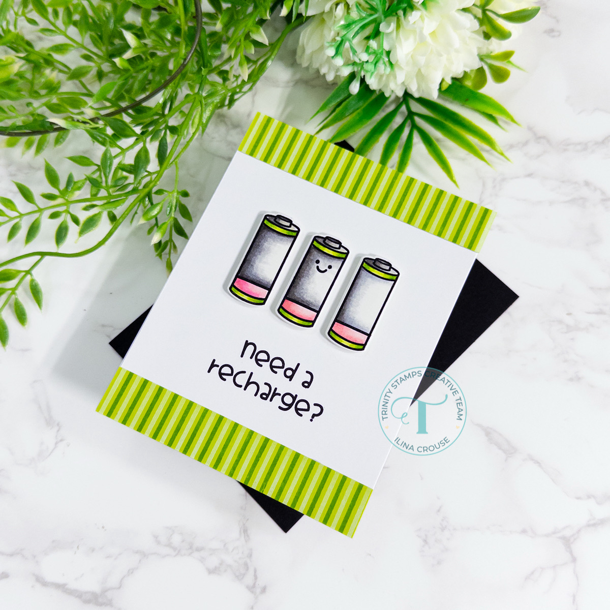 Ilina here! Today I am sharing a card using the new Recharge stamp set and the coordinating dies. Being an electrical engineer by day, I love the batteries in this set.