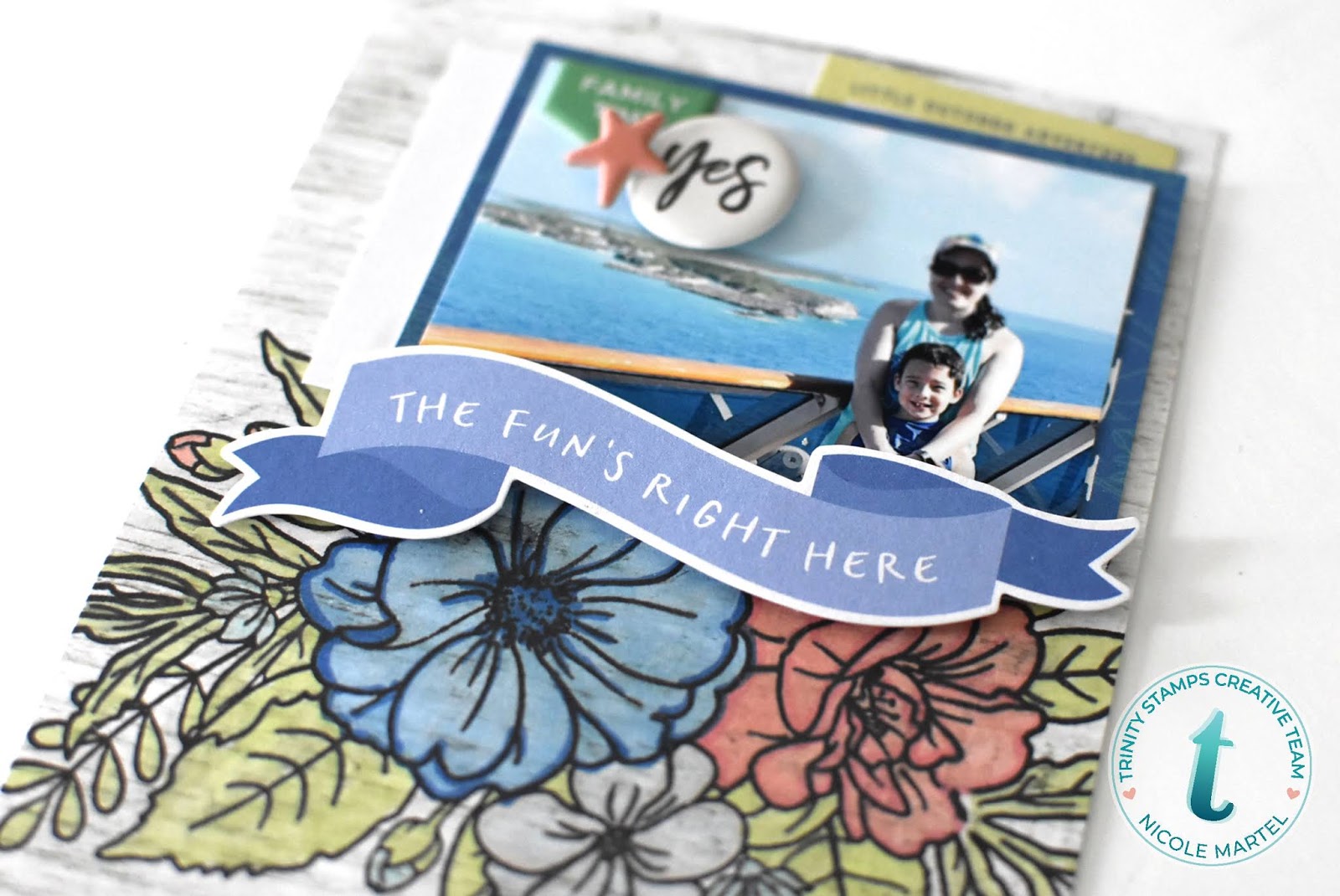 I’ve been trying to finish my vacation mini album from our cruise in December. I am almost done. I really love how this stamp set looks with the photo of me and Edward on the ship with Half Moon Cay in the background. It’s so pretty and perfect!