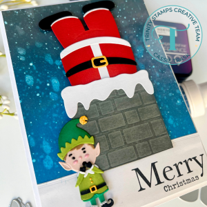 I’ve been on an interactive Holiday card kick lately, so why not share one more! Hi everyone, it’s Cassie Trask, back with another video tutorial to share with you. If you haven’t seen the die set called Stuck Santa yet, then you are in for a treat! It’s a great die set that has our dear Santa stuck in the chimney. I decided to make his legs sway back and forth and have the new Tiny Elf die set looking up at Santa with concern, LOL! To keep the sentiment simple, I used the Simply Sentimental – Merry stamps.